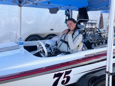 Don Burch raced a `1973 DiMarco runner bottom with a 427 Ford FE engine. His racing years extended from 1972 to 1976. After he passed away in 2012, he left the boat to his daughter, Amy. She grew up with a wrench in one hand and race gas in her veins. The boat was brought back to race life with a makeover in 2025.